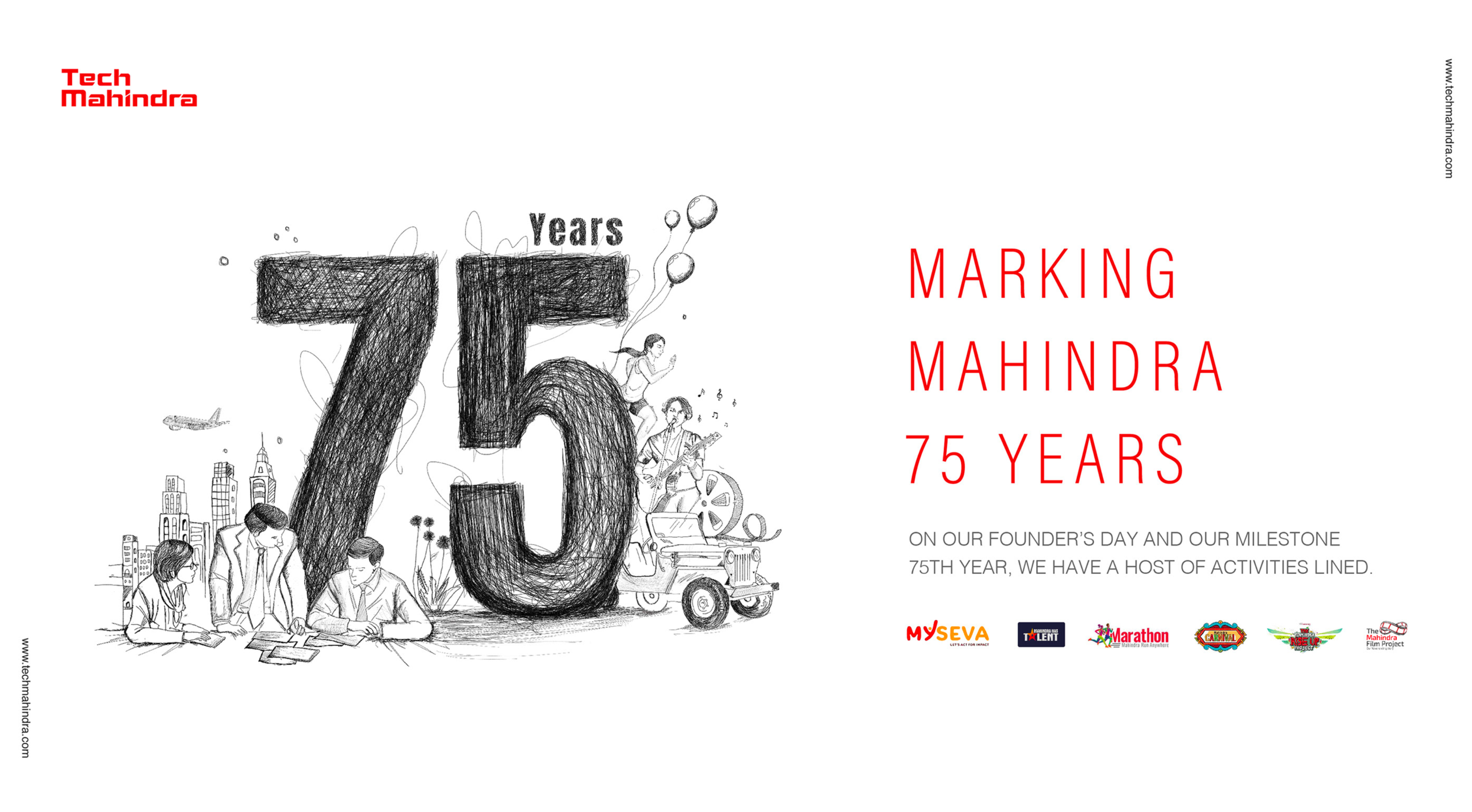 This poster was created as part of the Tech Mahindra 75 Years celebration campaign, with the intent to move beyond conventional corporate visuals and deliver something more expressive, memorable, and media-worthy. Instead of a typical polished design approach, the concept embraced a hand-crafted scribble style to convey legacy, people, innovation, and collective growth built over 75 years. The artwork began with traditional pencil-on-paper sketches, allowing ideas to flow organically, before being refined digitally using Photoshop. This blend of analog and digital techniques added authenticity, energy, and emotional depth to the final composition. Designed specifically for digital and social media publishing, the poster stands out through its raw creativity and storytelling—capturing attention while honoring the brand’s journey in a fresh, celebratory way.